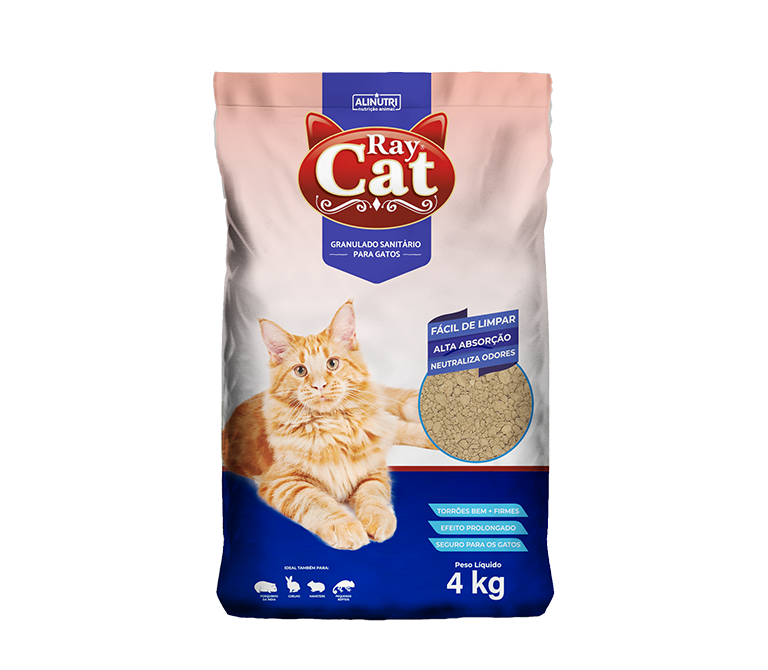 Ray Cat Granulado Higiênico é indicado para formação de torrões em bandejas sanitárias de gatos, hamsters, coelhos e répteis